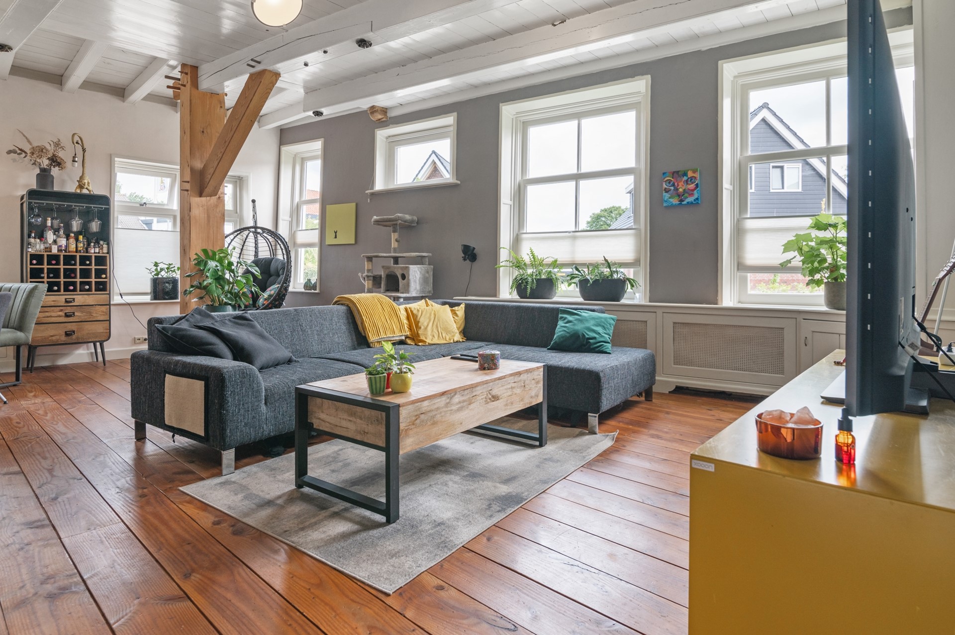 De lichte en ruime woonkamer straalt warmte en sfeer uit, terwijl de grote eetkeuken uitnodigt tot lange avonden tafelen met familie en vrienden.