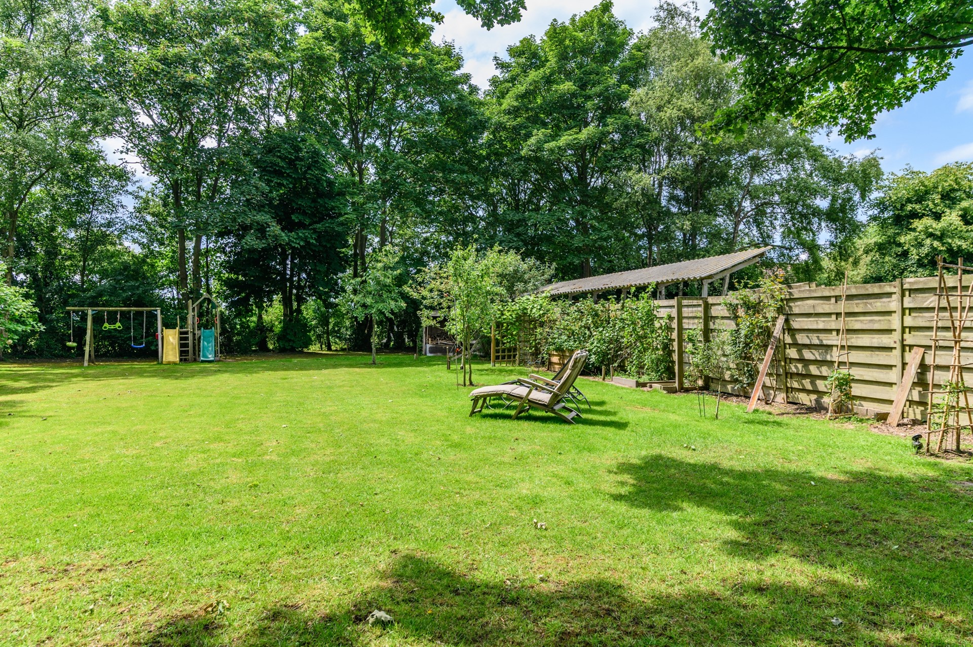 Kinderen kunnen hier eindeloos spelen op het grasveld dat zich perfect leent als speelweide, terwijl u geniet van de rust en ruimte.
